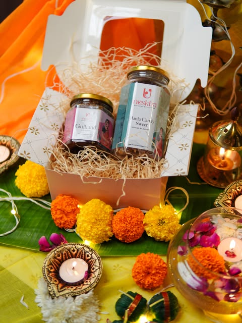 Nuskha Wellness Delight Hamper brings together the goodness of Amla Candy and Rose Gulkand in one thoughtful, healthy gift box.